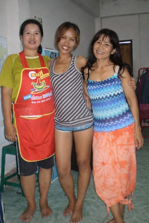 Sur la photo, vous pouvez voir deux femmes hébergées à Pattaya, et une voisine cuisinière de soupes au nouilles. Certains visages ont été modifiés par IA pour respecter le droit à l’image.